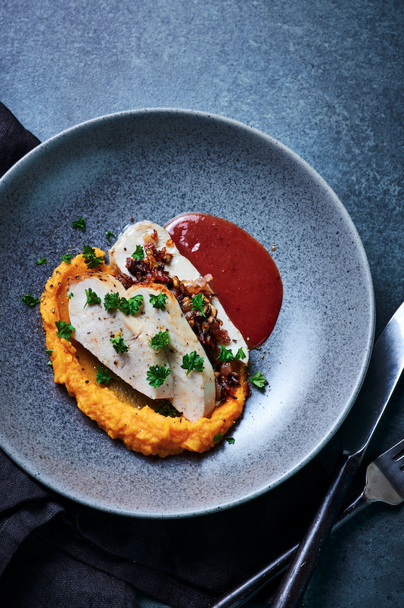 Kalkunfilet med søtpotet, stuffing og tranebærsaus