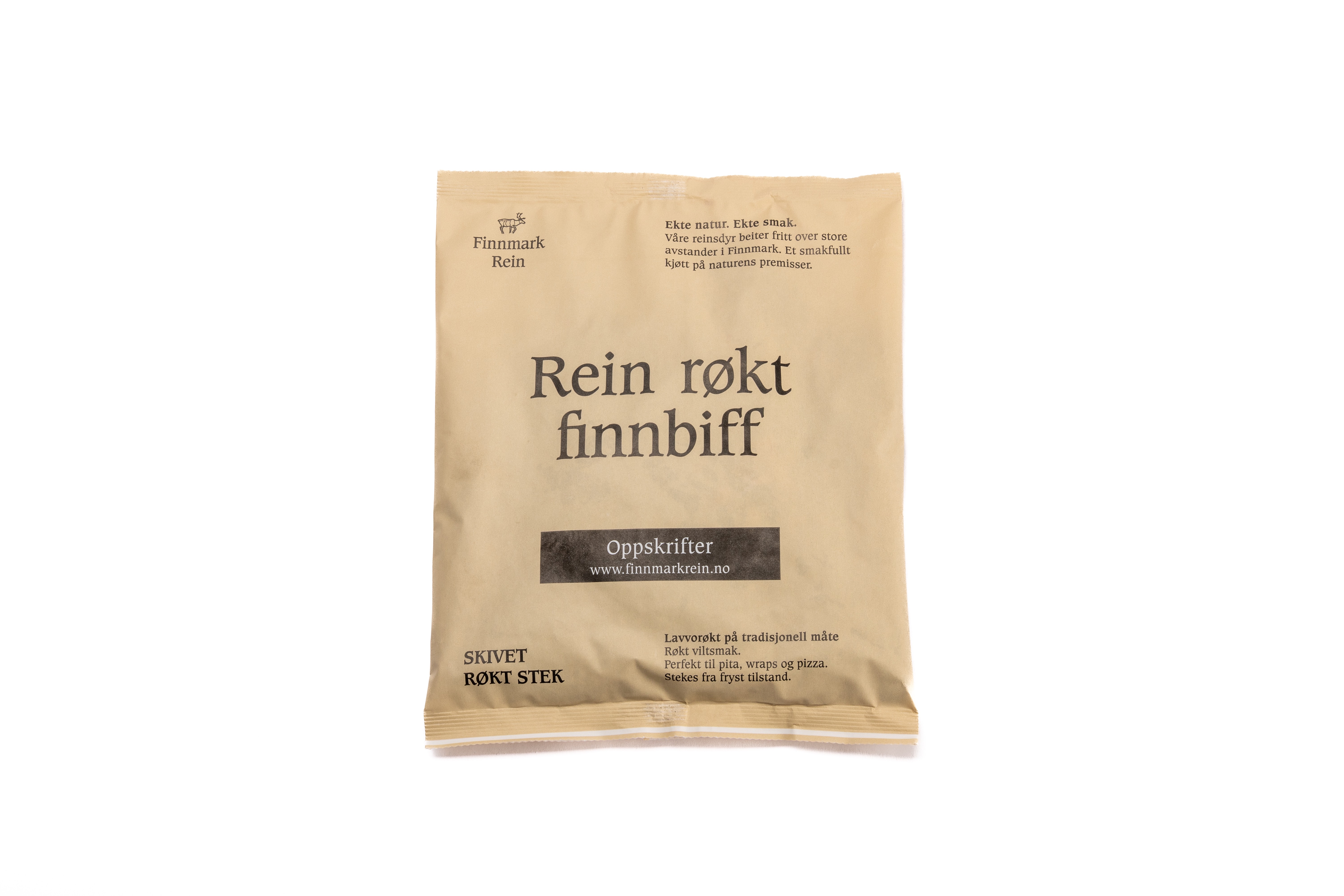 Rein røkt finnbiff fra Finnmark Rein selges hos utvalgte dagligvarebutikker.