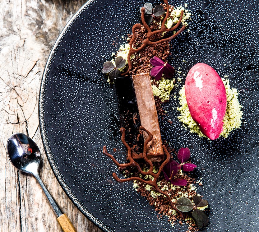 Bland alt sammen, rull til en pølse, dekk til med klingfilm og frys den. Riv over på en silikonmatte og tørk på 80 °C til den er helt tørr. Anrett som på bildet.