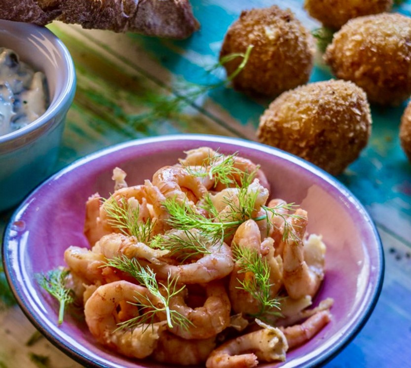 Bland i finkuttet hvitløk og revet klippfisk. Bland godt og smak til med sitron, salt og pepper.
