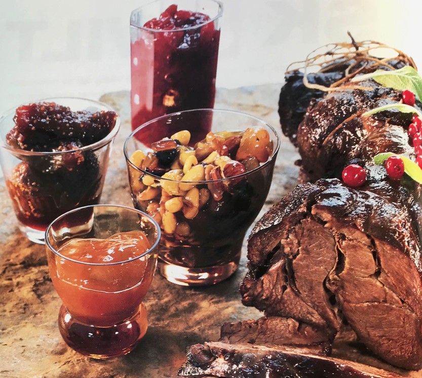 Lag karamell av sukkeret. Del opp fiken. Ha i rødvinen og la karamellen løse seg opp før du tilsetter fiken. La de trekke på svak varme til all vinen er fordampet. Server reinsdyrbogen med et utvalg kompotter, syltetøy og geleer.