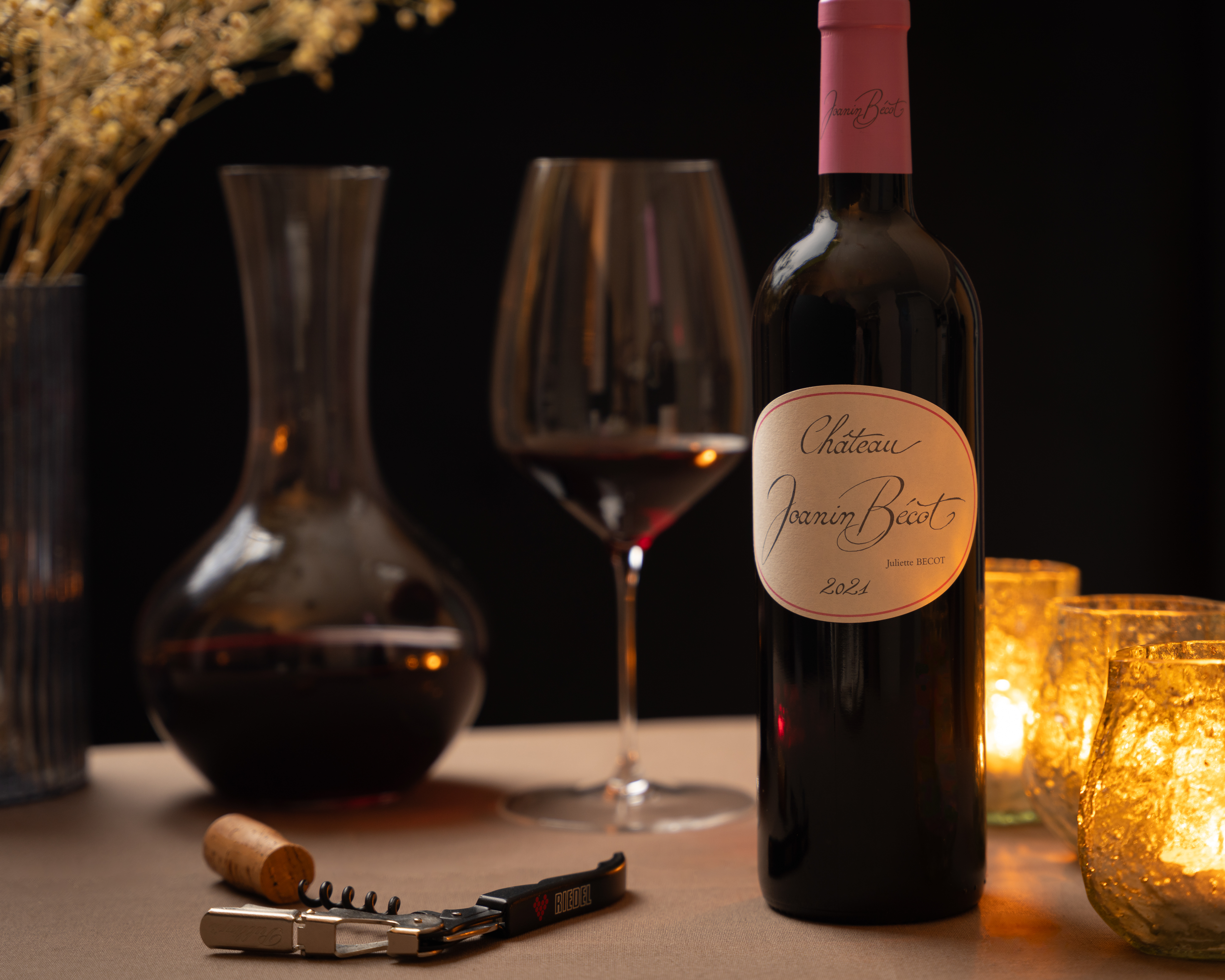 Å produsere kvalitetsvin krever betydelig innsats og store investeringer i både vinmark og kjeller. Etter at Bécot-familien overtok eiendommen i 2001, har de gjort nettopp det, noe som har ført til vinmarker og kjellerfasiliteter som holder en svært høy standard. Familien selv mener at det var først med 2020-årgangen at man kunne forvente vin av eksepsjonell kvalitet, og årets utgave av Joanin Bécot står absolutt i tråd med dette, og enda litt til. Den er hovedsakelig bestående av merlot, med en liten del cabernet franc fra gamle vinstokker – noen av dem kan spores helt tilbake til 1870! Denne blandingen gir en svært tilgjengelig, behagelig og typeriktig Bordeaux-vin, med generøs frukt og modne, runde tanniner. Cabernet franc bidrar i tillegg med god struktur og friskhet til vinen.
