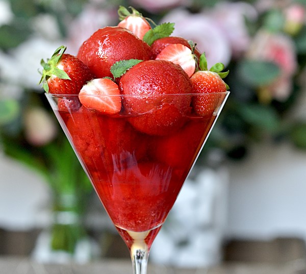 Rosèsorbet med jordbær og rosésirup