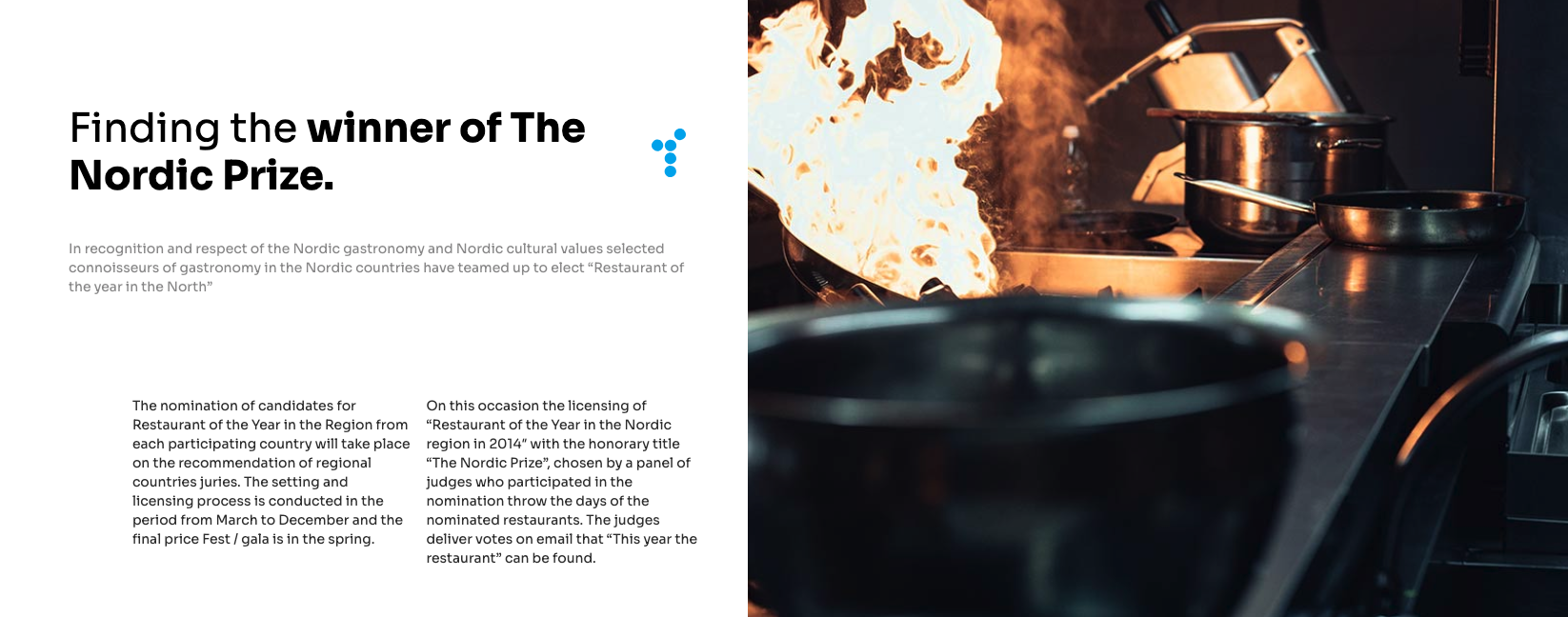 The Nordic Prize ble etablert i 2010 for å hedre årets restaurant i Norden og fremme kvalitet, kreativitet og håndverk i nordisk gastronomi. Prisen deles ut årlig til en restaurant som har utmerket seg gjennom helhetlig opplevelse, bærekraft, service og gastronomisk nivå. I vurderingen legges det også stor vekt på vinprogram og vinservice som en integrert del av restaurantens uttrykk. Felles for vinnerne er en tydelig identitet, dyp respekt for råvarene og en vilje til å drive gastronomien fremover - verdier som også kjennetegner Kvitnes Gård. Prisen deles ut av en uavhengig nordisk jury, og årets vinner annonseres i våren 2026. Juryen hedrer kreativitet og håndverk i nordisk gastronomi. Norges jury består av Arne Ronold, Henrik Sandberg og Rune Rake.