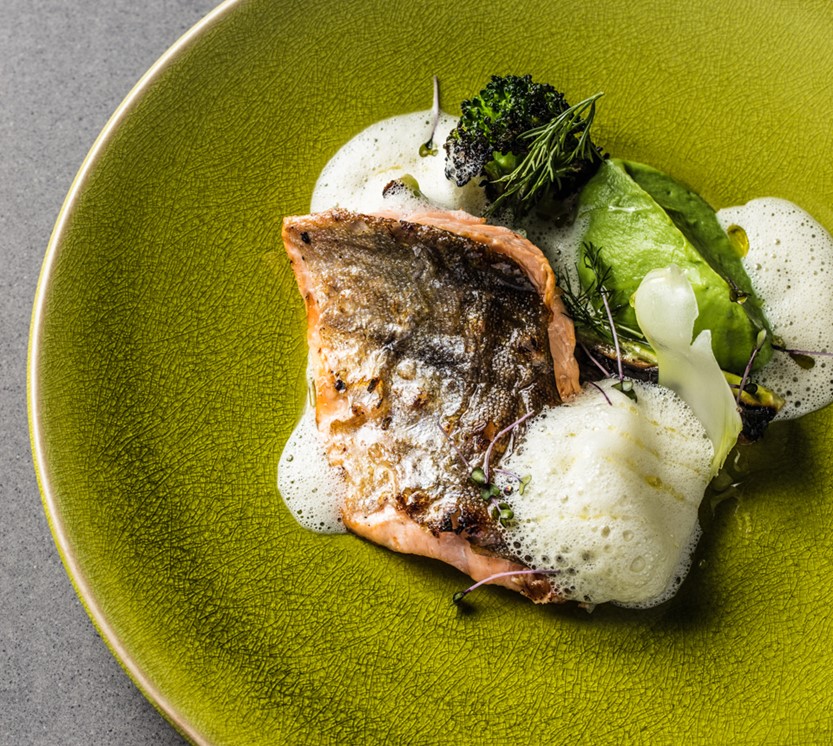 Grill eller stek røya på skinnsiden et par minutter. Krydre den med salt og pepper og litt skvist sitron.