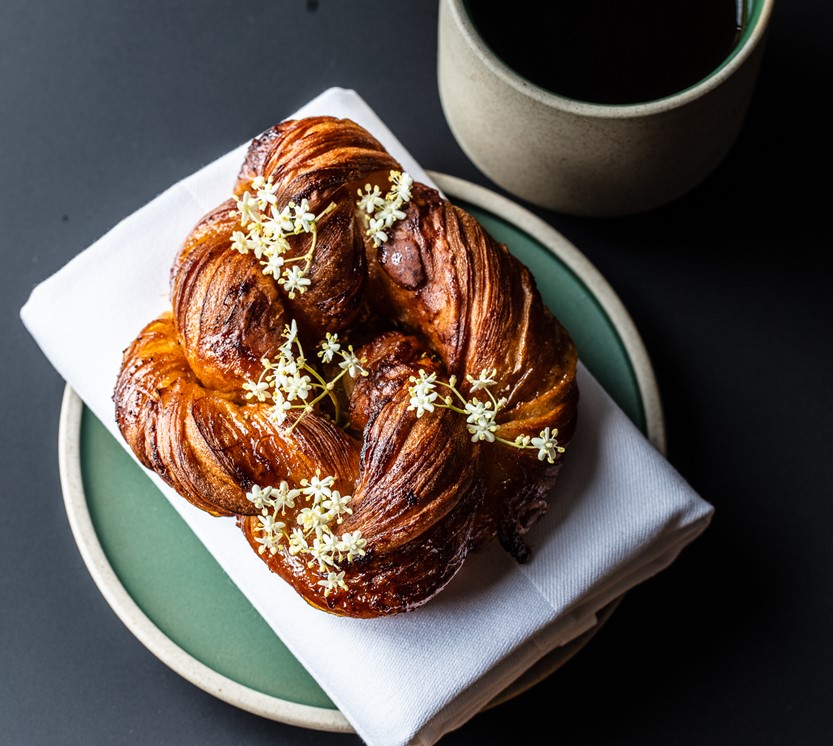 Rull ut wienerdeig, smør på hylleblomstsukker og fett sammen. Ha en spiseskje med rabarbrakompott i midten. La wienerdeigen heve og stek på 180 °C i ca. 10 minutter til de er gylne.