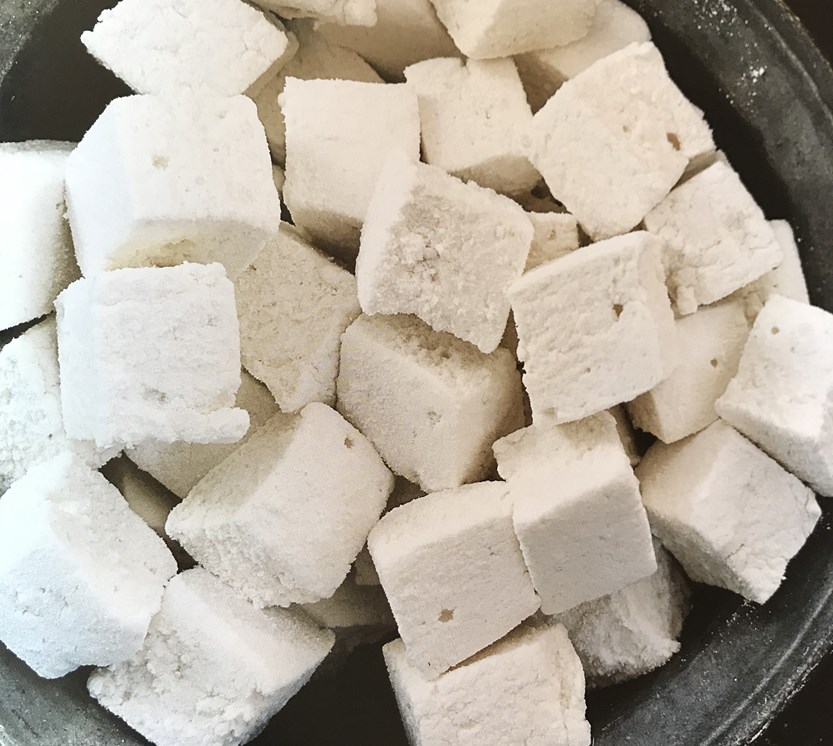 Strø gjerne på melis og la det avkjøles helt. Skjær i ønsket størrelse og oppbevar den i tett plastboks. Bruk gjerne en pizzaskjærer til dette.