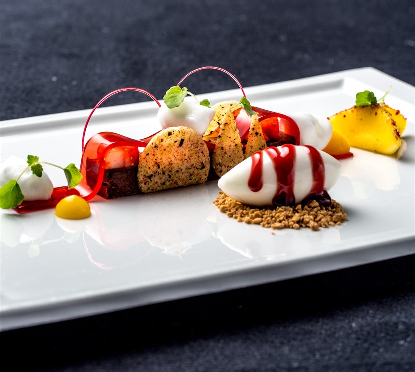 Mango med nyr-krem og blomster