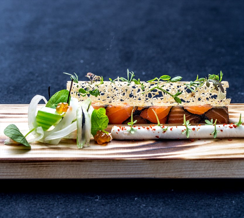 Alt marineres i olivenolje og salt. Anrettes fint på tallerkenen.