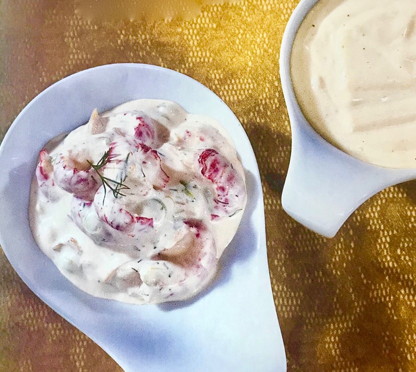 Rør sammen dressingen og smak til med salt, sitron og nykvernet pepper. La salaten godgjøre seg i kjøleskapet en times tid før servering