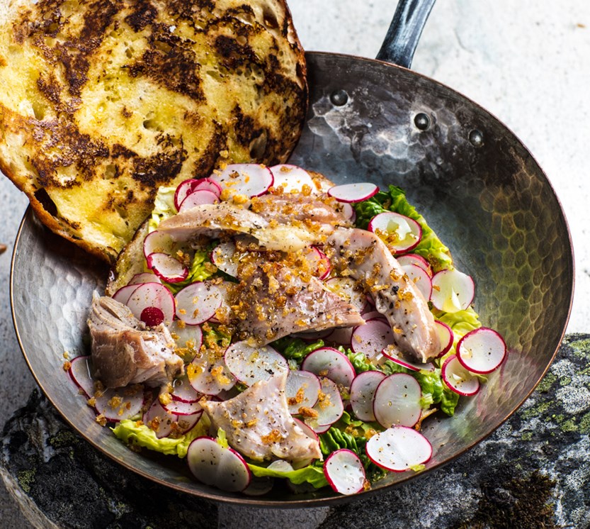 Løft lefsa opp og legg den forsiktig i oljen. Stek brødet gyllent på begge sider og legg det så over på et kjøkkenpapir for å renne av seg. Slik fortsetter du helt til det ikke er mer deig igjen. Server sammen med kjekjøtt og grønnsaker.